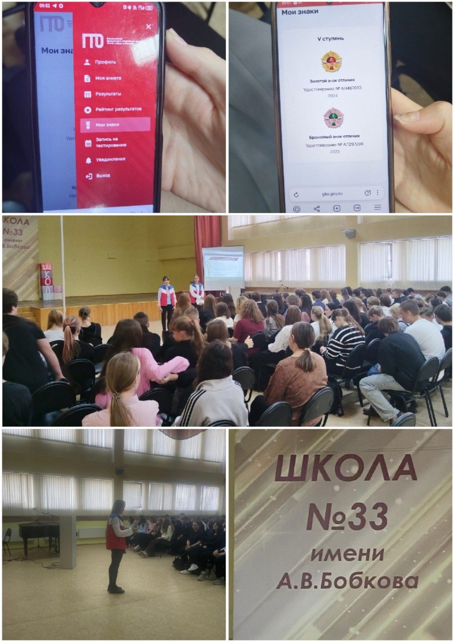 «Уроки ГТО» в школе № 33 города Кемерово. Сегодня специалисты Центра тестирования ГТО «МАУДО «Спортивная школа №7» провели «Уроки ГТО» в школе № 33. Под руководством специалистов Центра ГТО школьники 9-11 классов смогли пройти авторизацию на сайте ГТО через Госуслуги. В школе имеются списки всех детей с УИНномера, что позволило без проблем их активировать.